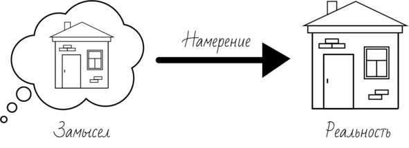 Предположим у вас есть некий замысел и есть физический мир, где он должен быть воплощен. Вы движетесь от замысла к реальности благодаря намерению. Где-то намерение может наталкиваться на препятствия, где-то – течь свободно.
