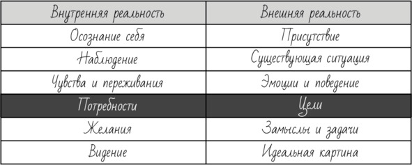Строку, отображающую внешний мир, я назвал «замыслы и задачи». Они проистекают из целей. Чтобы реализовать цель, нужно разбить путь к ней на конкретные задачи.
