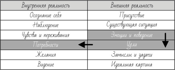 Итак, на второй строке вы наблюдаете то, что есть прямо сейчас. А здесь я назвал то, что происходит во внутреннем мире – «видение». Это тоже наблюдение, но пока еще не существующей в реальности идеальной ситуации.