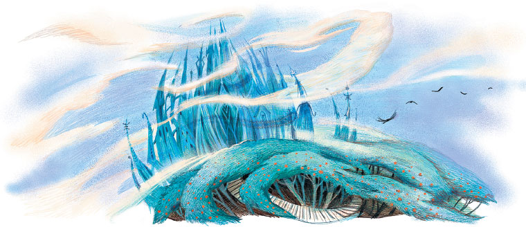 Так высок был замок Альзарон, что пролетавшие мимо тучи нередко цеплялись за его узорные шпили. И потому невольно вспоминалась древняя легенда, будто бы сложили замок Альзарон из голубого и синего мрамора великаны, в стародавние времена поселившиеся на горном перевале между южной долиной и северной.