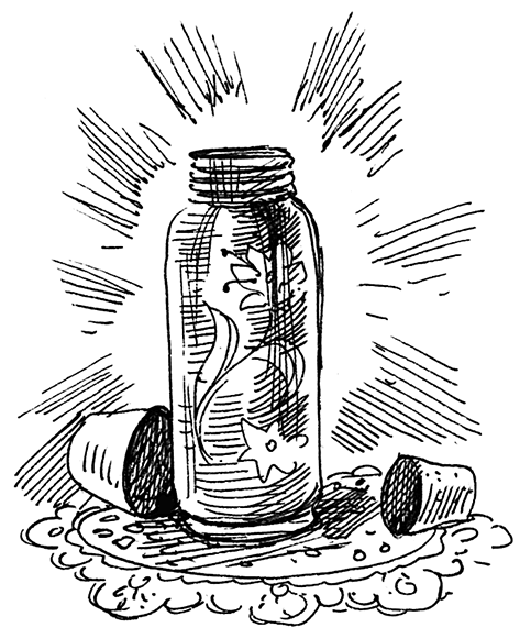 Джинн, яви свою мне верностьИ вернись обратно в термос!..Джинн сначала одной ногой осторожно ступил в термос, потом второй. Сложив над головой руки, он начал медленно втягиваться в узкое горлышко. Очертания его затуманились. Потом он сделался прозрачным, зыбким, словно жидкое стекло. Сквозь него стала видна дверь, ведущая на кухню. И наконец, тонкой струйкой дыма он исчез в термосе.