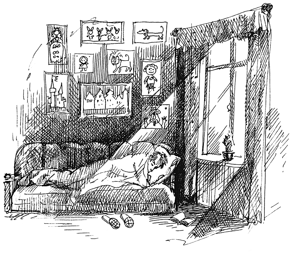 Светила полная голубая луна. Прохладные лучи легли на стену. Наверно, луна тоже любила детские рисунки.