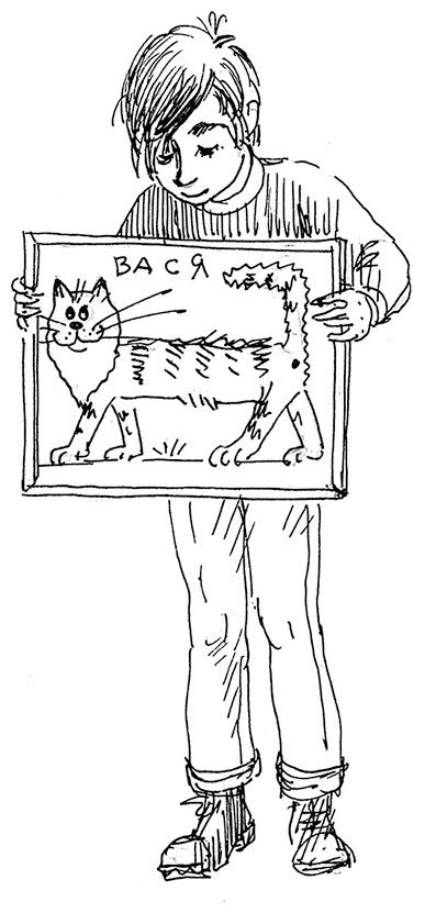 – Дяденька волшебник, здравствуйте. Меня зовут Вася. А это кот Васька. Это я для вас. Сам нарисовал. И рамку сам сделал, – быстро выпалил Вася Вертушинкин и замолчал, задохнувшись, не зная, что еще сказать.