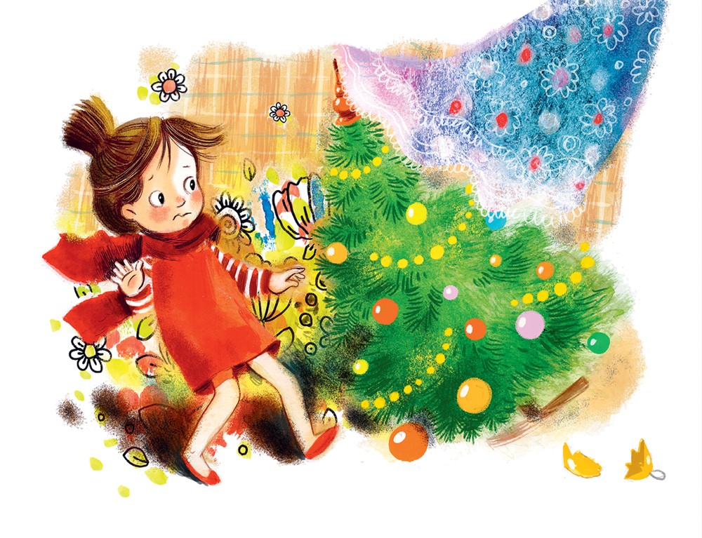 Залетел в окно сквознячок. Чуть качнулась ёлка. Упали шарики и разбились. И золотой, и серебряный.