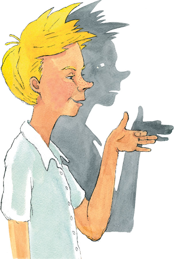 – Не буду я больше твоей тенью! – отчаянным голосом закричала тень. Видимо, она была доведена до такого состояния, что просто больше не могла молчать. – Ты старое дерево топором ударил! Не буду я такие твои движения повторять! Замучил ты меня, замучил! Ты вон полтора кило прибавил, а я ни миллиметра. Мне все тени говорят, будто я нос задираю. А это ты задираешь, и мне приходится! Все тени ребят счастливые. Они деревья сажают, чтобы новые тени росли! А ты?.. А ты?.. Не буду я больше твоей тенью! Не буду! Не хочу!