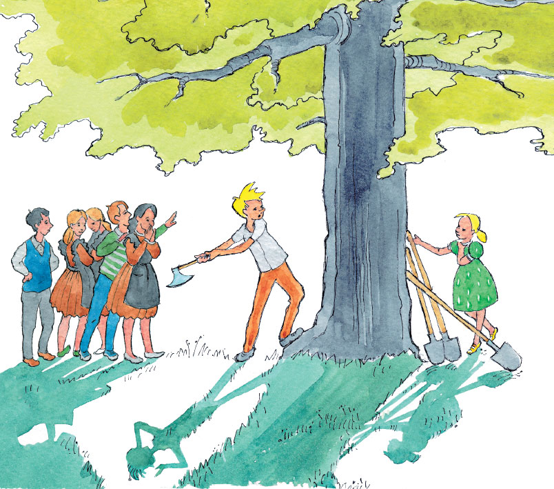 Но этого показалось ему мало. Он сунул в карман ножницы Люси Веткиной, схватил топор, валявшийся около скамейки, замахнулся и ударил по стволу старого дерева.