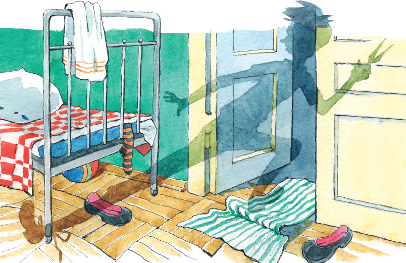 В конце концов он втолкнул её в комнату, схватил верёвку, на которой мама развешивала бельё во дворе, и крепко привязал её к железной спинке кровати.
