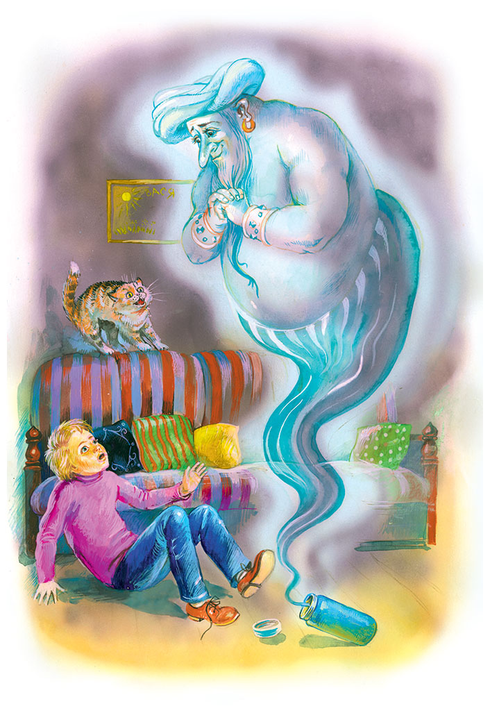 – Что прикажешь, о повелитель? – прогремел джинн, но, приглядевшись к коту, с шипением распластавшемуся на спинке кресла, взревел от негодования: – Какой же ты «о повелитель»?! Ты же всего-навсего…