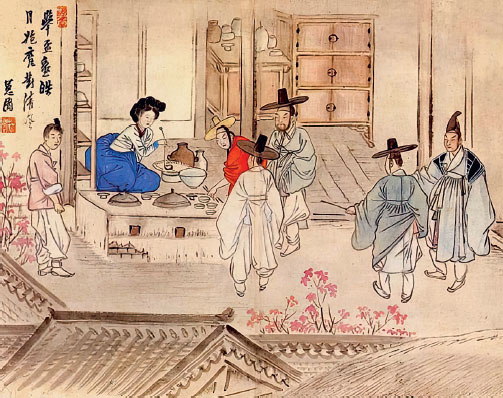 Син Юн Бок. Минхва. Церемония распития соджу. XIX век