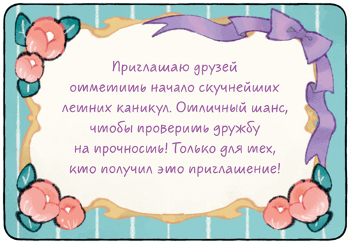 Аккуратный девичий почерк на яркой открытке. Но по официальному, если не сказать высокомерному, тону приглашения можно догадаться, кто автор. Пэ Юнна! Откуда она знает мой адрес? Мы, конечно, помирились на «фестивале неожиданностей», но и подружками не стали, чтобы такими записками обмениваться.