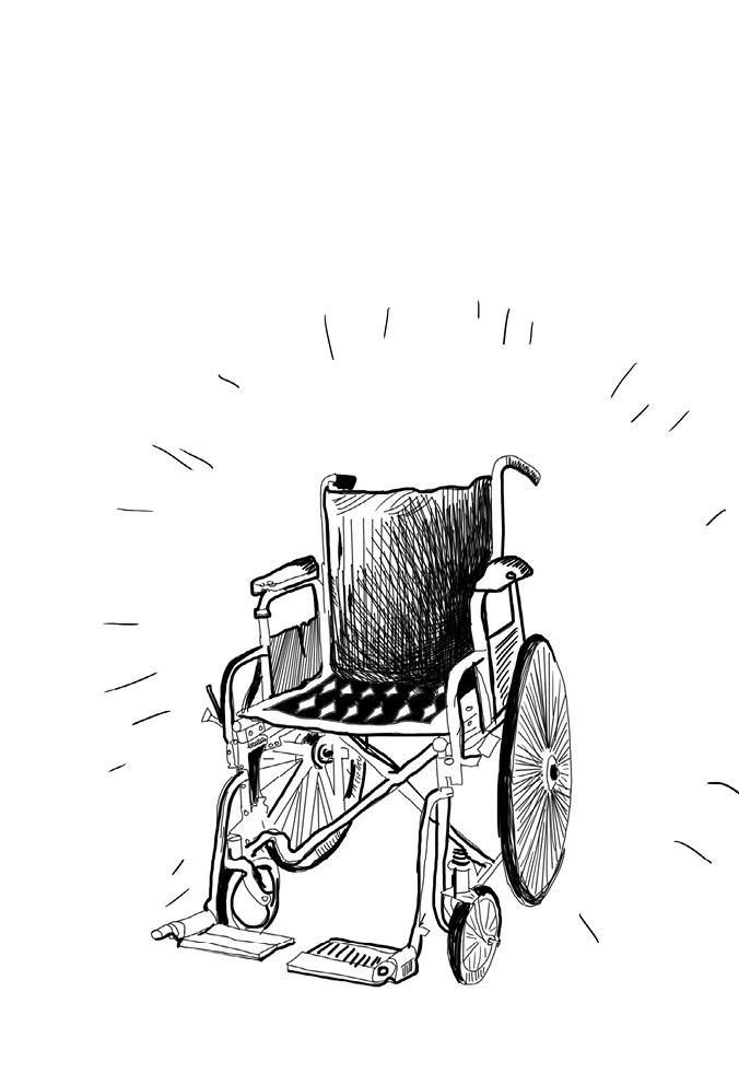 Лом мастерит для Евы полуавтоматическую коляску, чтобы она могла самостоятельно передвигаться. Он непрерывно трудится, жуя тянучку из горных трав.