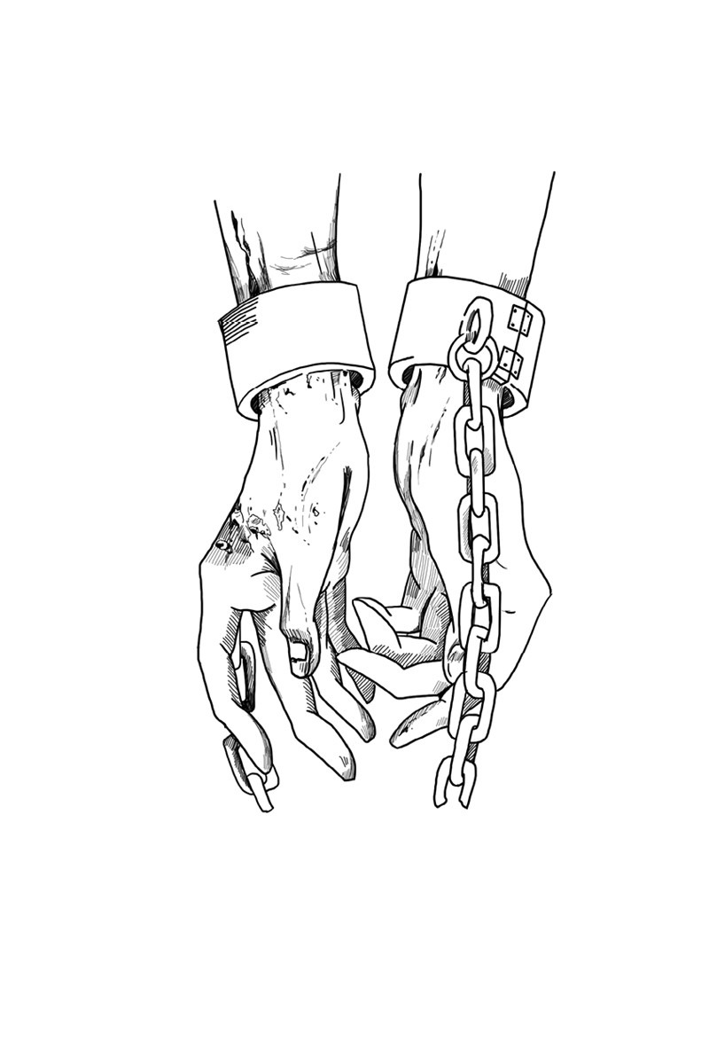 За закрытой дверью – маленькая клеть, там сидит женщина, посаженная на цепь, как собака. Так вот откуда шли звуки. Ее руки тоже закованы и связаны.