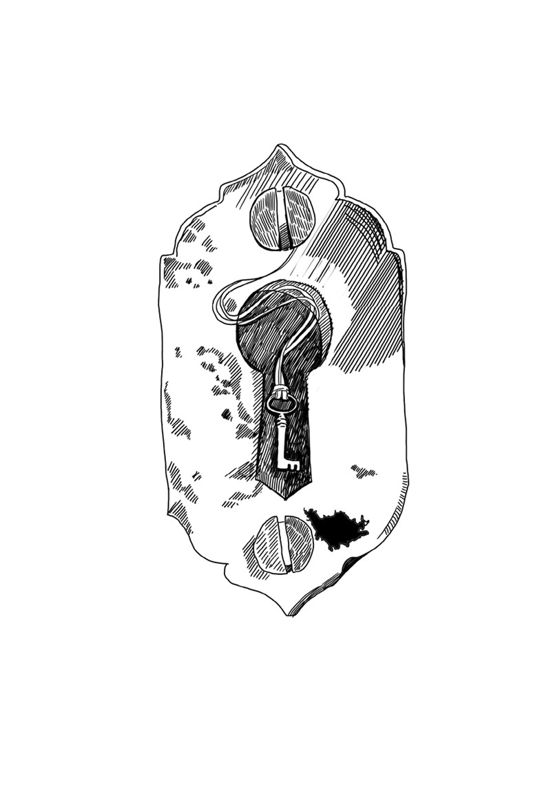 Ева говорит, что нужно осмотреть дом. Ведущие вниз ступеньки нещадно скрипят. Снизу слышны голоса. Закрытая дверь.