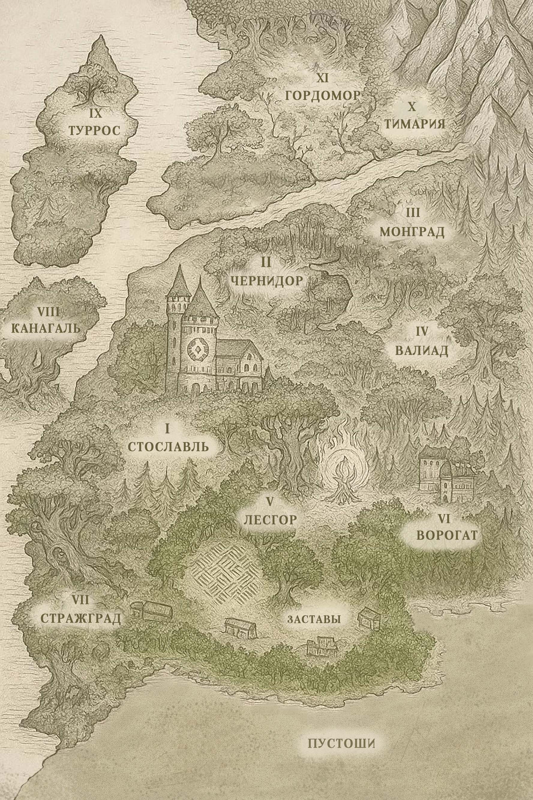 – Сегодня начинается ваш путь к становлению Защитниками княжеств. В двухлетний срок Ворогат проводит три круга учения: первый – «Слово и Корень» – обучение основам: грамоте и знанию земли. Второй – «Острожная Доля» – искусство боя и чар. И третий круг – «Ратное Ведовство» – высшее соединение силы духа с чарами печатей. Каждый из вас пройдет основы и удостоится Поклика. Но только тот, кто пройдет испытания и добьется отклика печати, будет допущен к оставшимся двум кругам. Недостойные станут Забытниками. Таковым запрещено возвращаться в школу, а имена их предадут забвению, чтобы не позорили род и княжества.