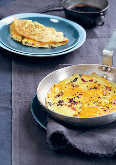Omelette with caramelized red onion and Red Leicester