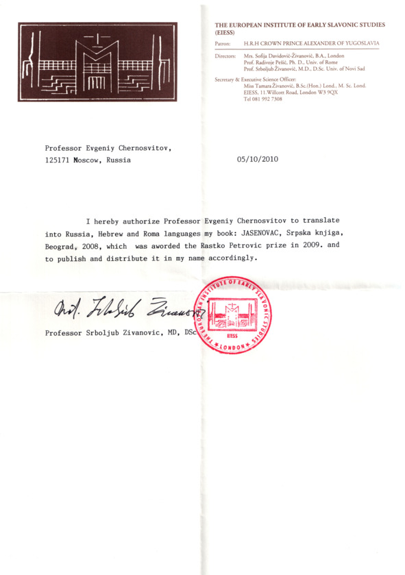 P.S. Отмечаем, что перевод книги академика Срболюба Живановича «Ясеновац», сделанный Екатериной Александровной Самойловой, доктором психологических наук и членом Международного комитета «Правда о Ясеноваце» – достоин источника. И в русском варианте книга остается на своем высочайшем уровне и сохраняет все свои, выше нами отмеченные, достоинства. Теперь «Ясеновац», уверены, не отрываясь, прочтут миллионы людей, для которых русский язык – родной.