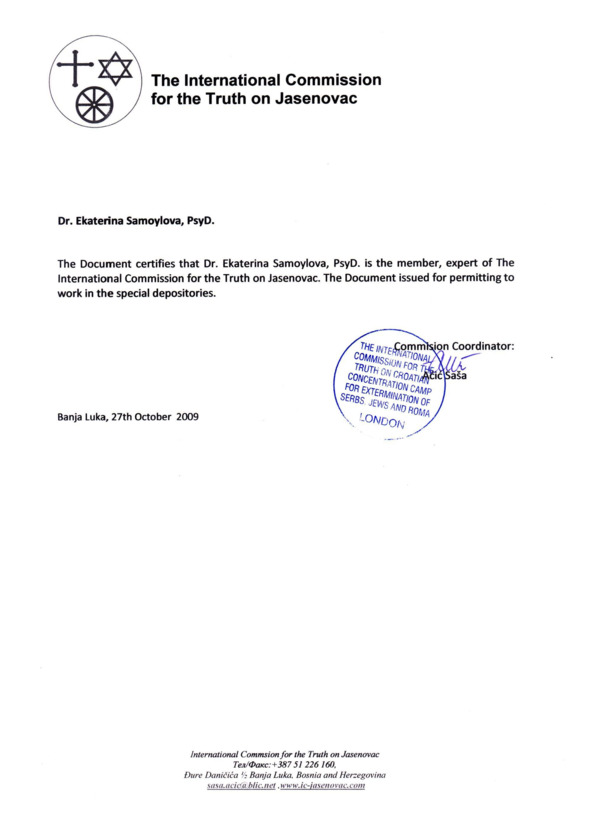 Как член Международной комиссии по установлению Правды о Ясеноваце, я много раз слышал свидетельства узников хорватских концлагерей. Я убедился в недостатке информации и знаний об ужасном геноциде, который совершили хорваты, под предводительством католического духовенства. Только в Ясеновацкой системе «лагерей смерти» в течение четырёх лет, было убито свыше 730 000 православных сербов, свыше 23 000 евреев и около 80 000 цыган. Убито и несколько тысяч хорват, которые были против государства усташей. В течение войны, политики и правители Независимого Государства Хорватия, уверяли речами, письменами и «документами», что первыми в мире решили «еврейский вопрос». Что всех евреев они уничтожили! Цыган не упоминали, так как их вообще не считали за людей, достойных внимания. Хвалились, что им удалось убить в Ясеновце 1 400 000 сербов. Даже гитлеровская пропаганда открещивалась от них! Гитлеровские информационные источники поясняли, что хорваты явно преувеличивают свои заслуги перед фюрером! По моим данным, хорватами в годы Второй Мировой Войны в концлагерях было уничтожено свыше 700 000 сербов.