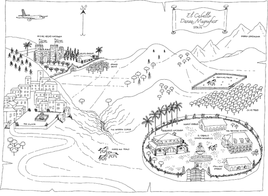 He knew that horses could not be white. Yet how else could he describe the mares that were galloping towards him? These mares were as pure white as the snow that topped the distant mountains of the Sierra de Grazalema. They were as white as the stone walls that ran around the stables here at El Caballo Danza Magnifico.