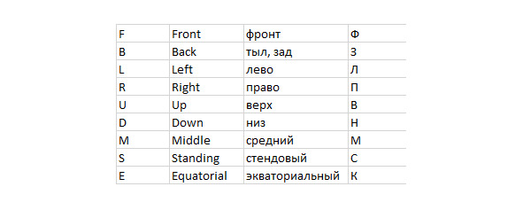 Чтобы запомнить какие-буквы за какое направление отвечают, автор придумал две запоминалки. Все эти сведения отражены в таблице 2.