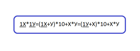 1Х*1У= (1Х+У) *10+Х*У= (1У+Х) *10+Х*У
