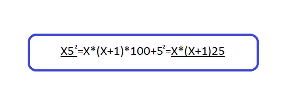 Формула вычисления квадратов для чисел, оканчивающихся на 5: