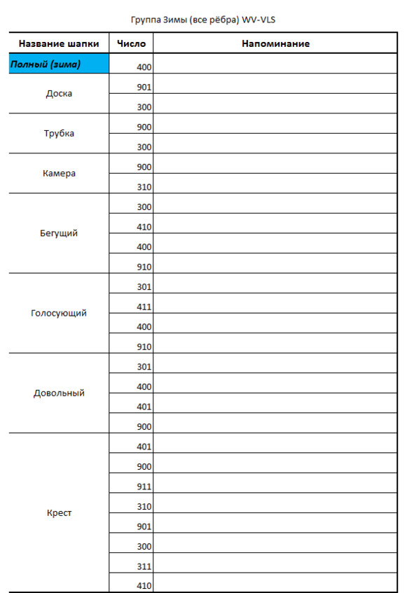 Название первой подгруппы в каждой группе я называю определяющим, и дающим название группы: группа Стелса, группа Человека, группа Снежинки, группа Полного, группа Коряги и т. п.
