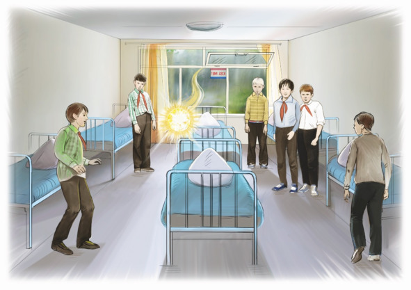 Светящийся шар плавно и бесшумно юркнул в нашу комнату через открытую форточку. Летом 1984 года (мне девять лет) я оказался в подмосковном лагере имени Германа Титова. Мы только что вернулись с обеда из столовой лагеря. В комнате находилось шесть мальчиков. На улице шел моросящий дождь и было серо. Вдруг появился этот яркий, но не ослепляющий шар размером с гандбольный мяч (сантиметров 10—15 в диаметре).