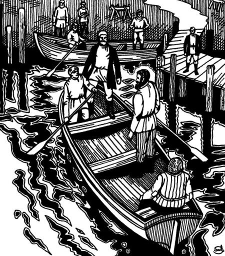 Эрих Рактвиц. «Чужеземные тропы, незнакомые моря».«1594 год. Открытие английским мореплавателем Чеслером морского пути в Белое море вызвало у английских купцов и мореплавателей стремление проникнуть вдоль северных берегов Сибири в Китай и Индию. Но все попытки Пета и Джакмана окончились без результатов, и англичане оставили свою мореходную деятельность по открытию северо-восточного морского пути. На смену им выступили голландцы».