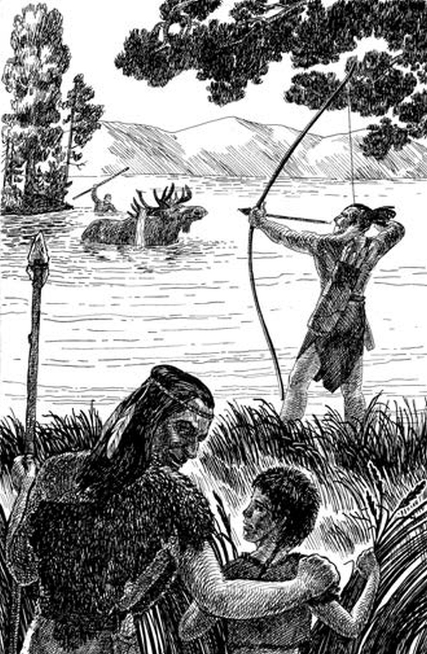 Волнистыми линиями Таука показал воду, потом купающегося лося, чуть подальше охотника с луком на берегу и, конечно, охотника, который добыл для племени еду.