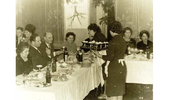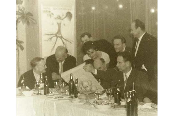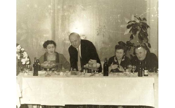 За центральным столом: Вера Михайловна и Борис Викторович Раушенбах, Нина Ивановна и Сергей Павлович Королёвы.