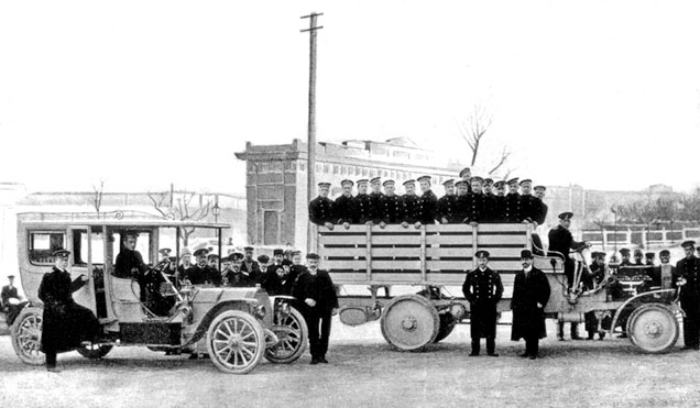 «Боевое крещение» военные автомобили впервые прошли во время Русско-японской войны 1904–1905 годов. Всего, по разным оценкам, Русская армия задействовала от двадцати до тридцати легковых машин. Они использовались в основном для штабной и фельдъегерской службы. На фронт в Маньчжурию были стянуты почти все имеющиеся к тому времени в войсках автомобили. Некоторое количество машин для воюющей армии было пожертвовано частными лицами и торгово-промышленными предприятиями.