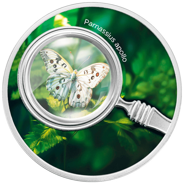 Coins. Some countries are producing coins as pieces of art, not for wide usage, but for coin collectors. Mostly these pieces of art are precise and beautiful, but sometimes they can be very funny. One of such funny examples I would like to present here – a coin from Cameroun which (according the writing) depicts Parnassius apollo (Linnaeus, 1758), but in fact it is something different, sharing features of Morpho and some Satyridae butterflies.