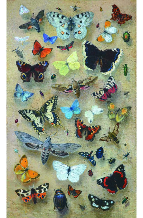 Vasily Polenov’s «Butterfly Collection» (1874). This is a still life depicting butterflies laid out in a display case, among which you can see Parnassius apollo (Linnaeus, 1758), one of the most famous butterflies of the Parnassius genus.