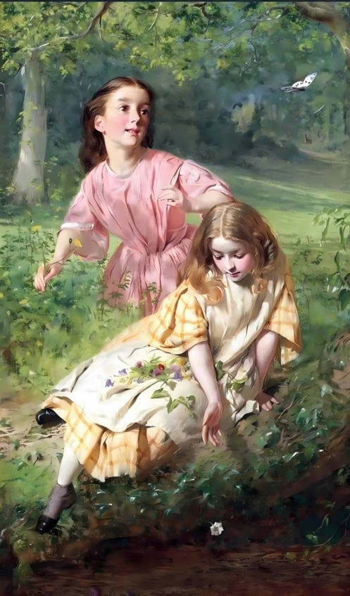 George Elgar Hicks «Life’s sunshine». He was an English painter during the Victorian era. He is best known for his large genre paintings, which emulate William Powell Frith in style, but was also a society portraitist.