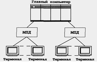 Главный компьютер через мультиплексоры передачи данных (МПД) взаимодействует с терминалами, как представлено на рисунке ниже.