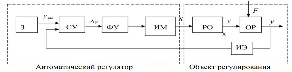 Рис. 1.5. Схема взаимодействия объекта регулирования и автоматического регулятора в контуре управления