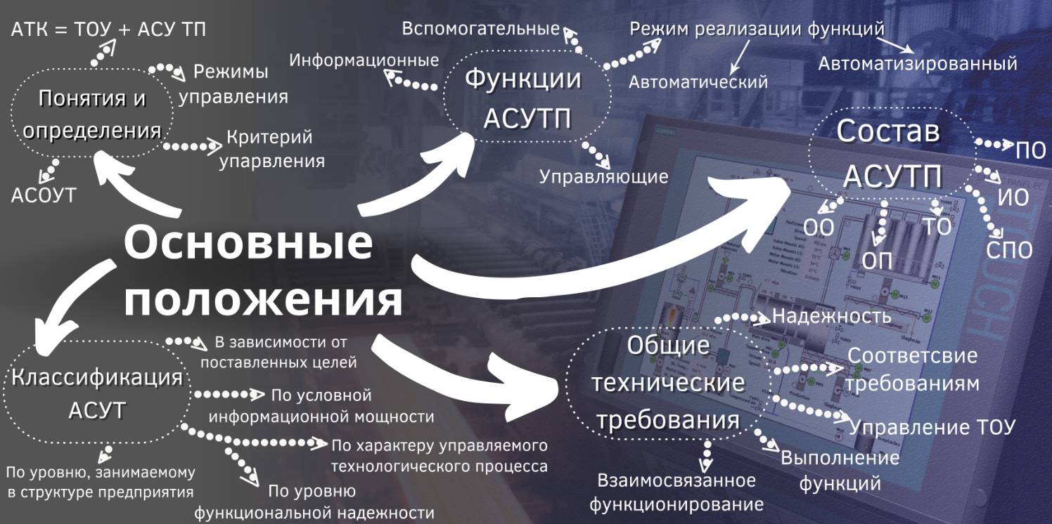 АСУ ТП представляют собой системы управления, качественно отличные от систем автоматического регулирования (САР), предназначенных для стабилизации режимов процессов и агрегатов.