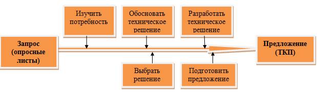 Проектные группы арматурных компаний подключаются к работе по расчету на этапе выбора арматуры по существующим опросным листам, разрабатывают технико-коммерческое предложение и представляют его клиенту. В работе расчетчика, специалиста по выбору арматуры или коммерческого инженера проектной группы существует много сложностей, связанных с текучкой, невозможностью глубоко изучить потребность и обосновать предлагаемые решения для конкретного клиента. Предлагаемые решения могут быть недостаточно обоснованы, слишком общими или стандартными. Такие предложения не несут достаточной потребительской ценности для клиента. При этом существует явная необходимость в том, чтобы снизить трудоемкость и рутинность работ по проведению расчетных работ. Общая схема работ по подготовке предложений показана на рис. 1.