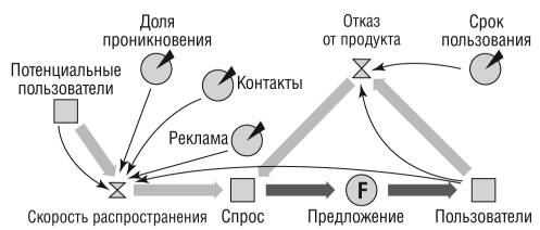 Рис. 2.2. Пример системно-динамической диаграммы «Проникновение продукта на рынке»
