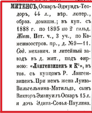 б) справочные данные по владельцам завода – Р. Лангензипену и О. Митенсу, справка за 1888 г.[3]