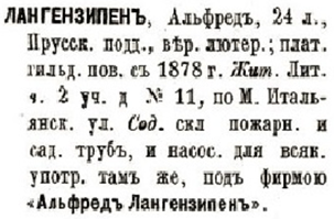 Рис.1.3. Выписка о купце 2-й гильдии Альфреде Лангензипене [4]