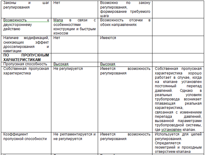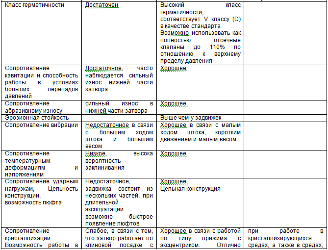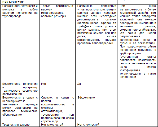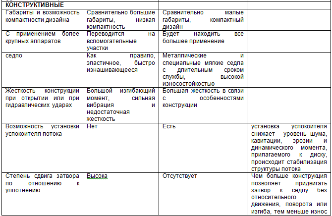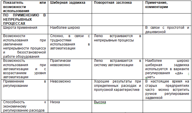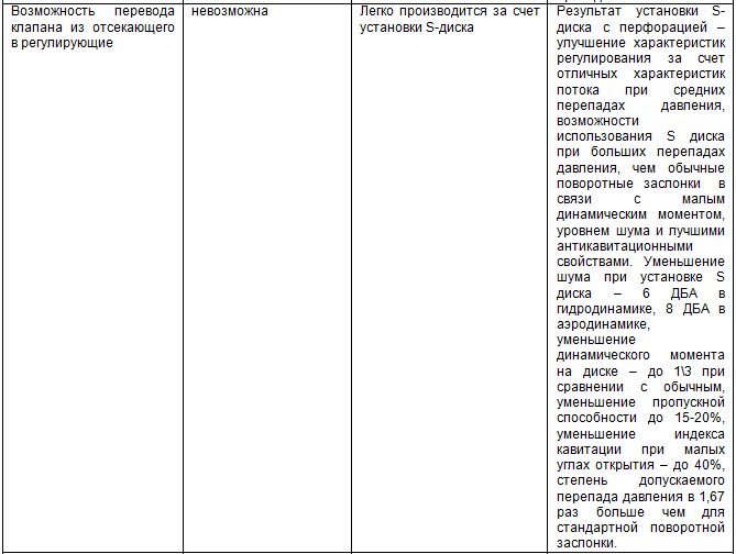 Ниже показаны сводные характеристики преимуществ применения поворотных заслонок вместо задвижек, табл. 2.1.