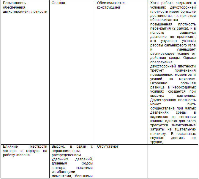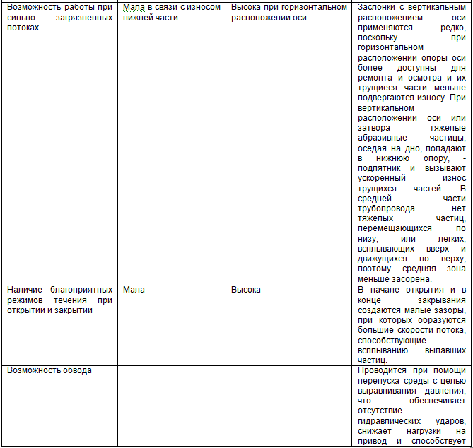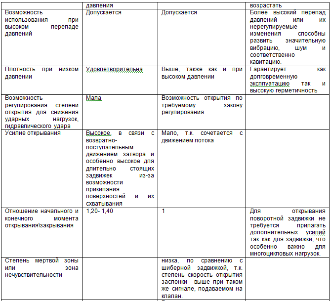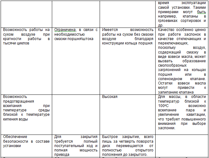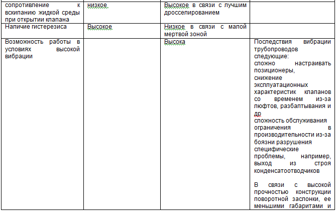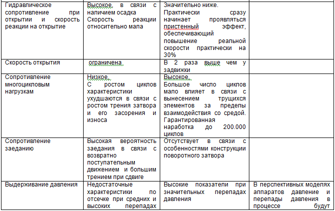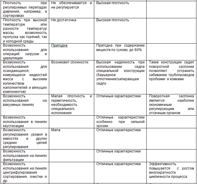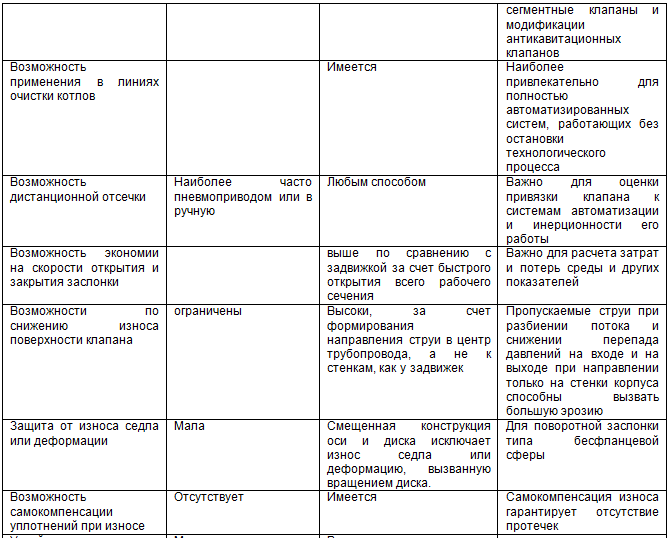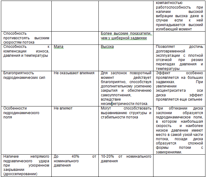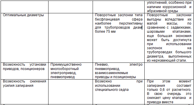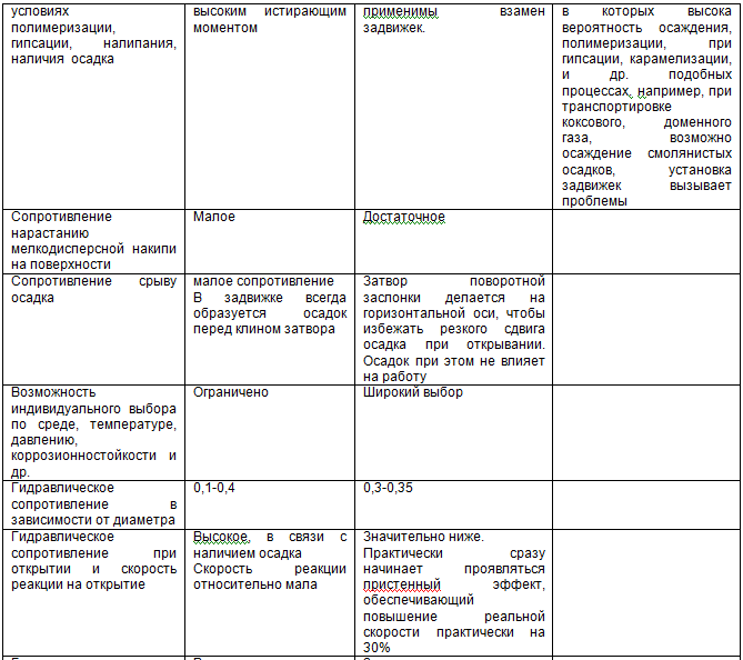 Табл. 2.1. Преимущества применения поворотных заслонок по сравнению с задвижками.
