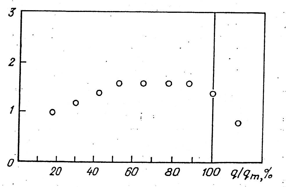 Для относительного усиления установленного клапана действительно правило, согласно которому в диапазоне регулирования усиление должно быть не более 0,5, а его изменение может быть лишь немногим более 2. Если установочное усиление не отвечает названным условиям, необходимо вместе с изготовителем тщательно исследовать динамику регулирующей способности во всем диапазоне регулирования. Если усиление данного клапана слишком низкое, высокое или оно сильно колеблется в рабочем диапазоне технологического процесса, это как правило, доставляет трудности в отношении регулирующих устройств. С другой стороны слишком высокое усиление клапана затрудняет точность регулирования, так как для степени погрешности в величине потока клапана действительна формула