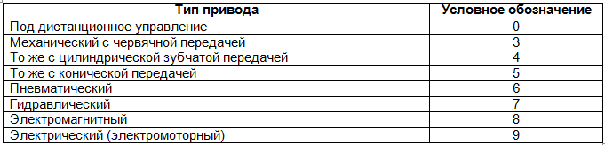 Иногда после букв, определяющих материал уплотнения, ставят цифры, обозначающие вариант конструктивного исполнения. Например, 15с922нж1 означает: 15 – клапан запорный, с – стальной, 9 – с электроприводом, 22 – порядковый номер по книге регистрации, нж – материал уплотнения, 1 – конструктивное исполнение.