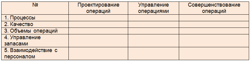 ЗАДАНИЕИспользуя приведенную ниже матрицу для анализа своей роли как менеджера по операциям, укажите в матрице примеры решений, которые Вам пришлось принимать в прошедшем месяце