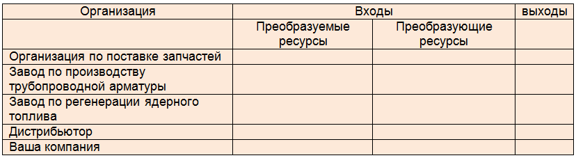 ЗАДАНИЕУкажите основные входы, преобразующие и преобразуемые и выходы для перечисленных ниже организаций.