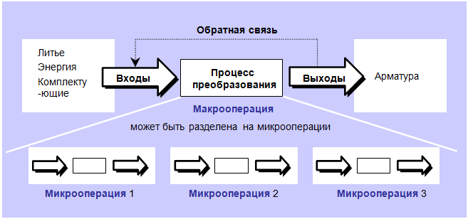 Процесс преобразования – эта любая деятельность, в результате которой один или больше входов преобразуются с увеличением их ценности в выходы для потребителей и клиентов.