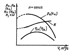 Наибольший интерес для анализа работы компрессора представляют зависимость рк = f(V), H = f(V). Последнюю обычно называют напорной характеристикой.