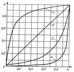 На рис.2.1. представлены пропускные характеристики наиболее распространенных клапанов в их функциональной зависимости от коэффициента пропускной способности Ф и степени открытия h.
